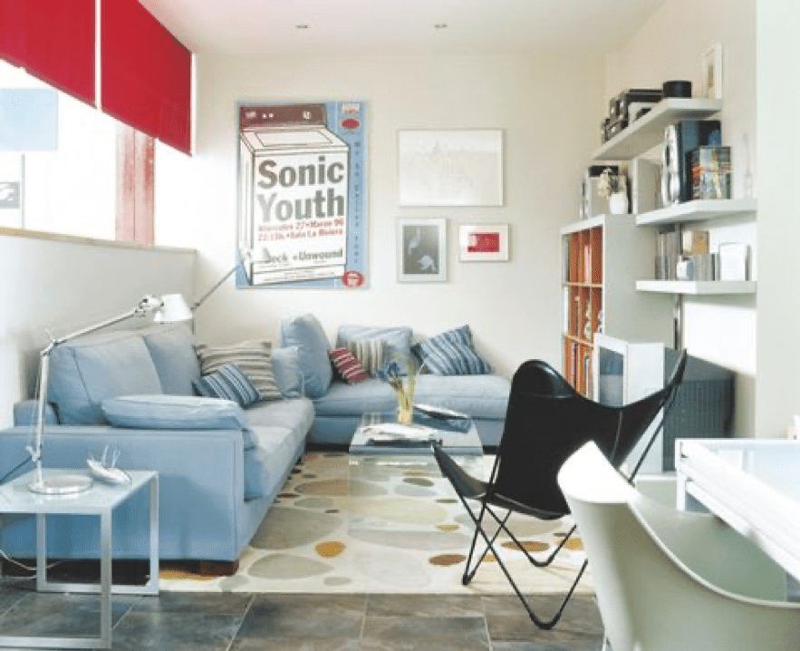 Si quieres ganar espacio, lo mejor para decorar un salón pequeño es no cerrar el espacio con muebles, es decir, no crear divisiones u obstáculos visuales.
