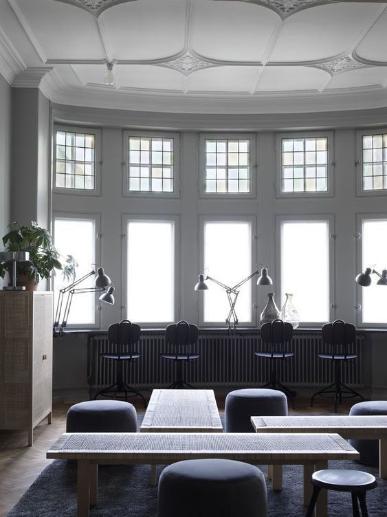 Las sillas han de ser cómodas para que no acaben perjudicando la salud postural del empleado. Sería interesante también habilitar alguna zona de descanso, con algunos sofás modernos. A continuación os mostramos algunos ejemplos de oficinas que usan mobiliario moderno: