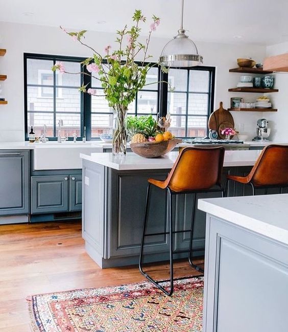 Quizá no lo hayas percibido, pero es muy seguro que la encimera y la zona de trabajo de la cocina sean de colores oscuros. Esto se debe al enfoque de contrarrestar el efecto de la luz solar, pero también de darle mayor presencia a la cocina. Los colores que se destacan en la cocina te atrapan, te invitan a permanecer en ese lugar, en vez de cruzar el marco que lleva al jardín o la zona abierta.